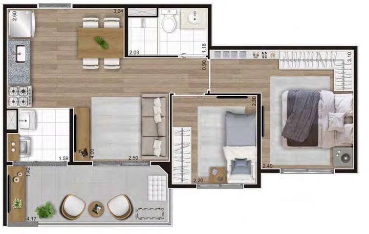 2 DormitóriosÁrea Privativa