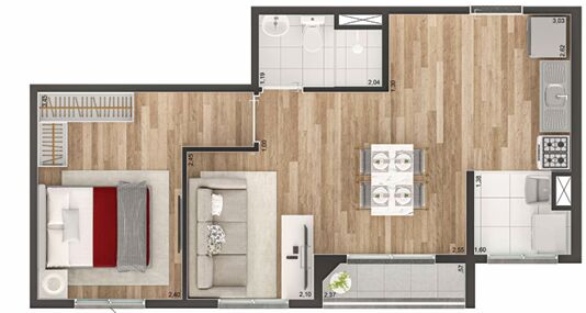 1 Dormitório1 Banheiro1 Cozinha1 Sala de jantar1 Sala de estar1 Área de serviço