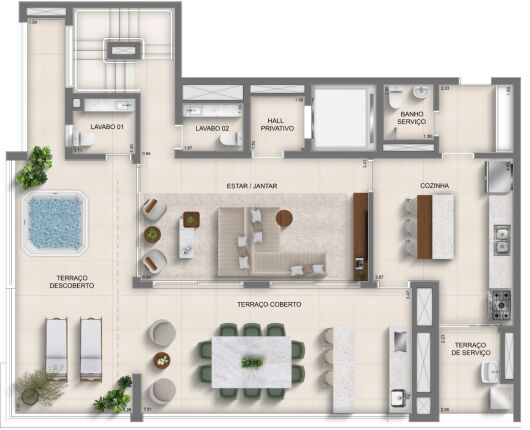 Para os amantes de esporte e lazer, o condomínio oferece uma série de opções: academia, área pet, coworking, brinquedoteca, lavanderia, playground, quadra de tênis, quadra poliesportiva, piscina e salão de festas.