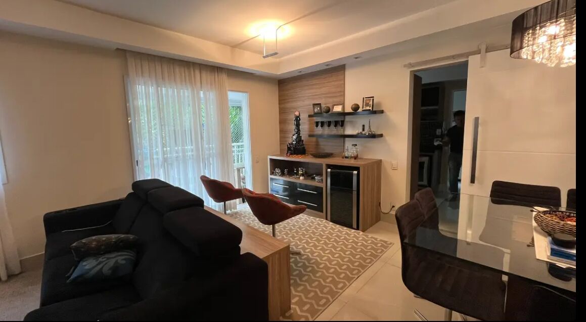 A sala de estar integrada à sala de jantar se abre para uma bela varanda gourmet bem espaçosa e com vista livre do bairro, Um ótimo espaço ao ar livre para desfrutar de muito verde e bem-estar.