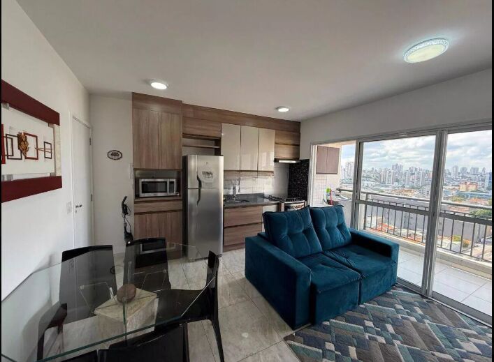 Composto por 2 dormitórios, sala integrada à cozinha planejada, banheiro moderno, varanda ampla com vista panorâmica e todo mobiliado, incluindo armários, geladeira, fogão, micro-ondas, sofá, mesa de jantar, camas e guarda-roupas. Ideal para quem busca praticidade sem abrir mão do bom gosto.