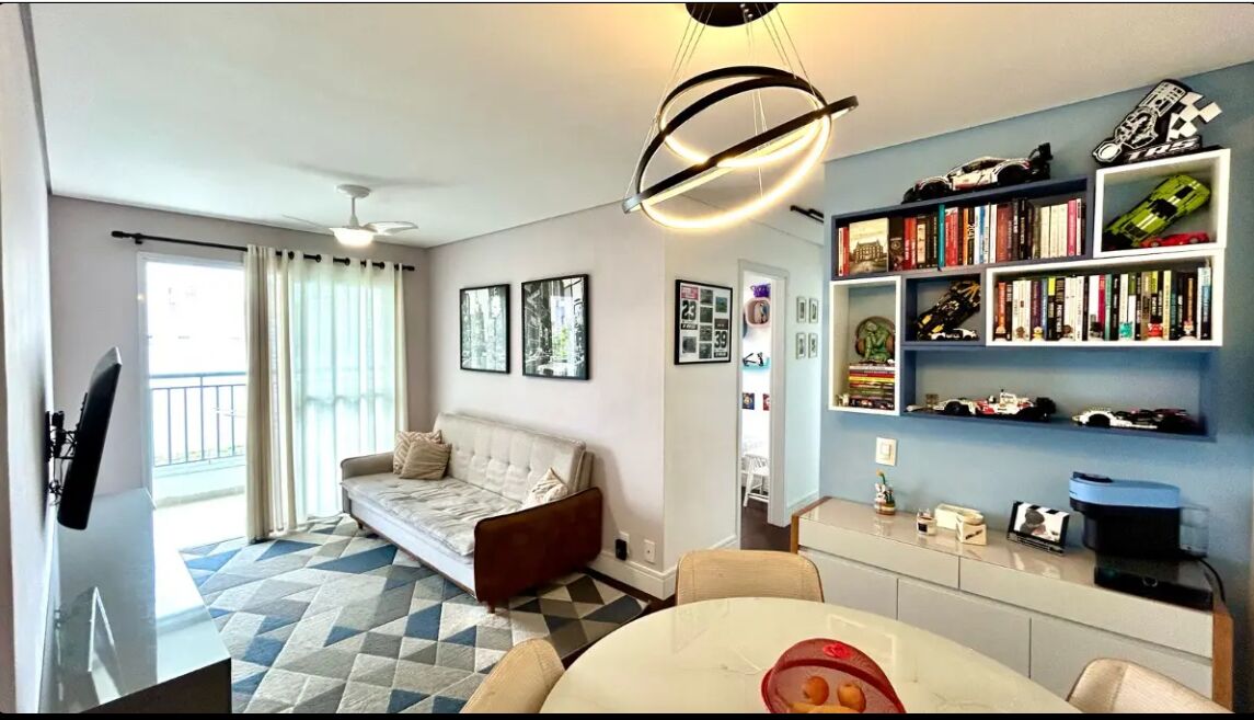 Apartamento super aconchegante à venda com 2 quartos, sendo 1 suíte (com ar condicionado), e 2 banheiros no total. Conta com varanda Garden, envidraçada (teto e lateral), piso de madeira nos quartos e na sala, aquecedor a gás (gás e água individualizados), água aquecida em todas as torneiras, depósito privativo com prateleiras fixas, ventilador de teto na sala, móveis planejados em todos os ambientes e 1 vaga livre.