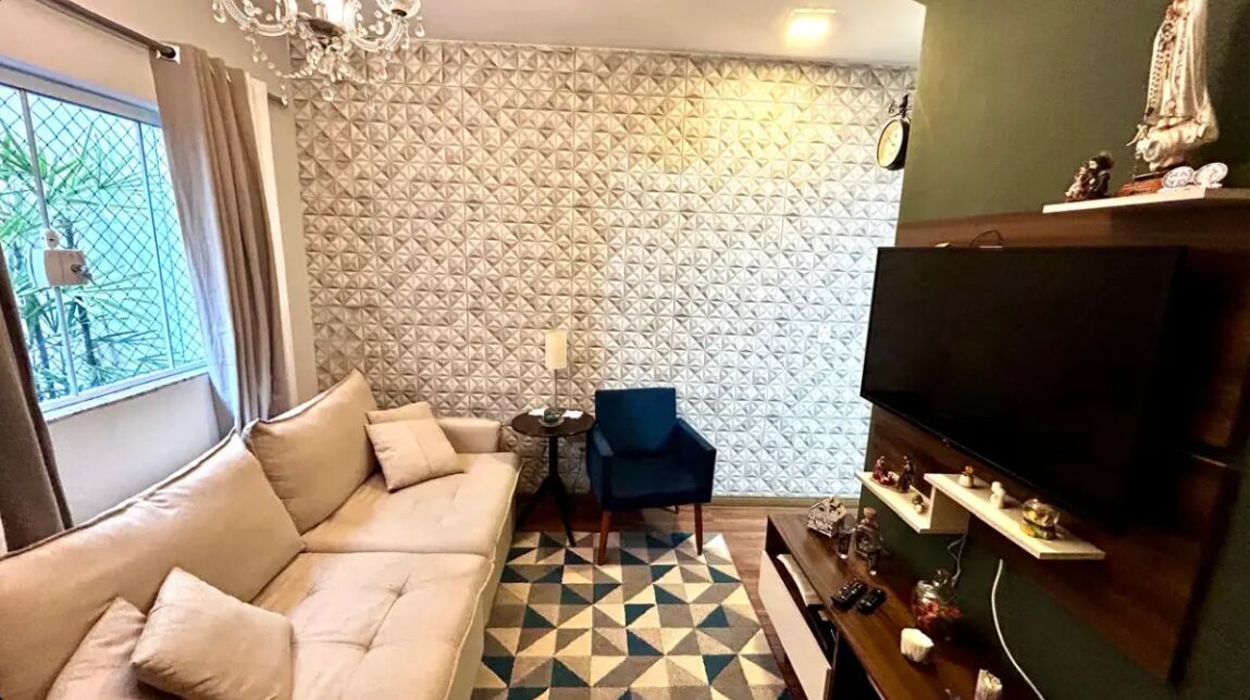 Com 55 m² de área inteligentemente distribuída, o imóvel conta com duas suítes, sala de estar acolhedora, e uma cozinha planejada que une estética e funcionalidade, a área de serviço com cobertura retrátil, e um espaço adaptável para churrasqueira, o que acrescenta praticidade ao dia a dia.